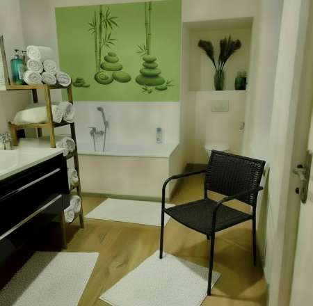 Douche, serviettes et peignoirs a disposition`