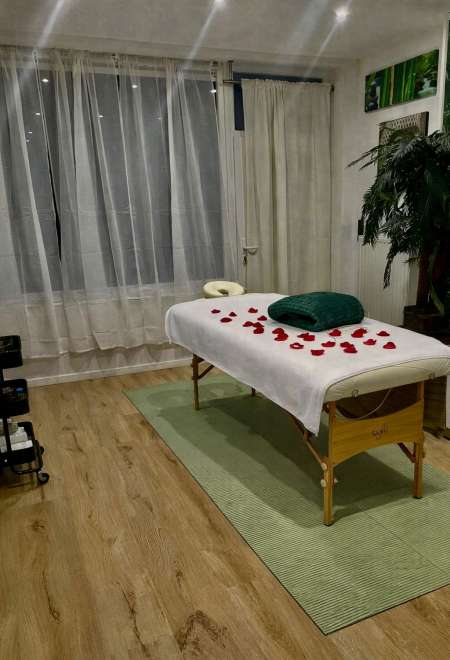 Je pratique sur table de massage professionnelle avec